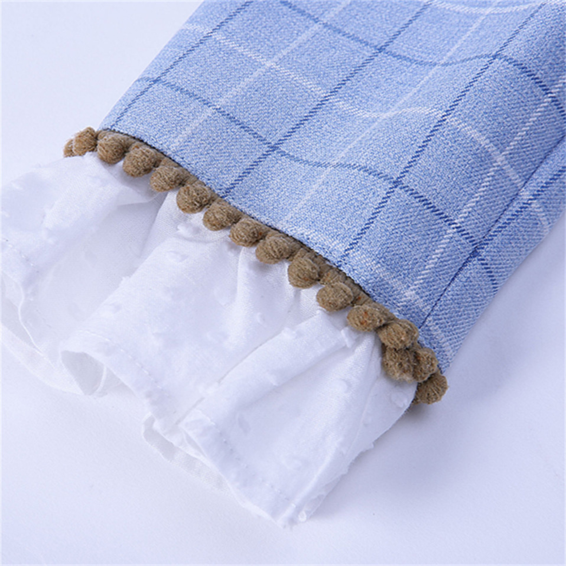Powder blue windowpane plaid with quilted diamond bodice
