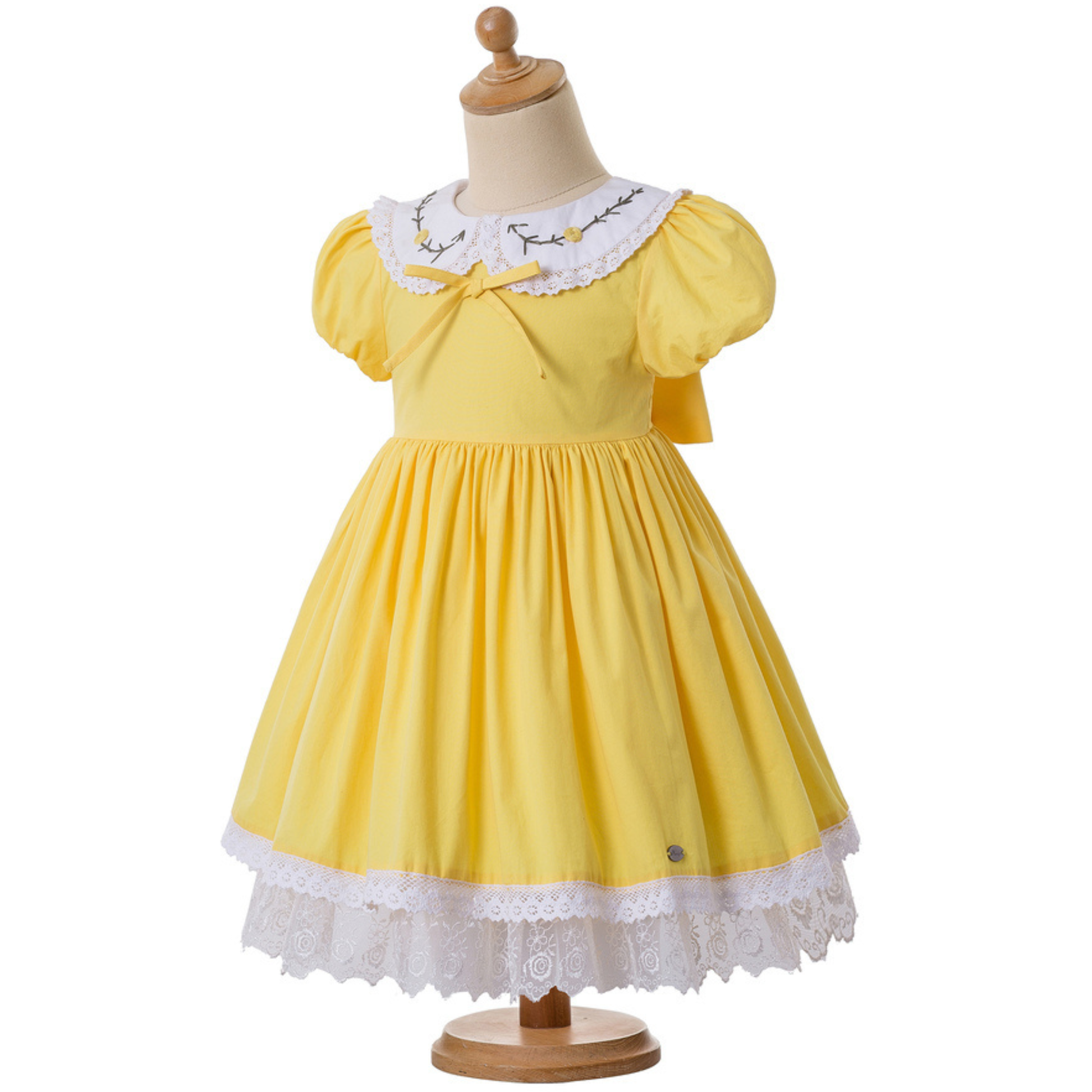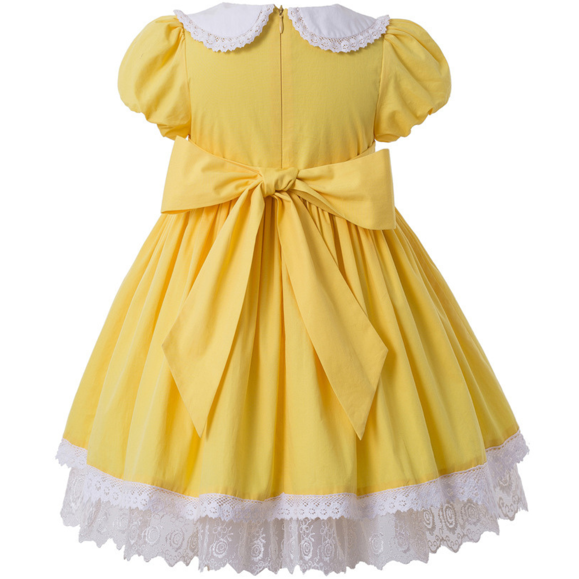 Material: Cotton BlendComposition : 100% CottonSleeve Length : Short sleeveSleeve type : Lantern SleevePattern: Solid ColorDress Length : Knee LengthCollar Style : Doll CollarDetails : BowFabric : None StretchSeason: SummerFit type: AStyle: Party (Princess)Hand wash, do not dry clean.